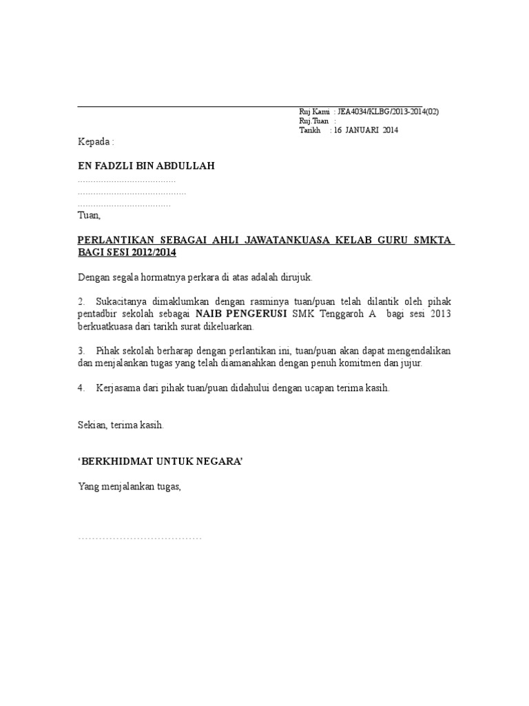 Surat Perlantikan Wakil In English from i0.wp.com Surat bulanan kebenarandiluluskan cuti sakit barah 12.09.2008, 19.09.2008, catatkanbergaji penuh selama 26 hari 25.09.2008 hingga no. May 22, 2019 · ingin memohon pinjaman atau memohon perkerjaan yang mana memerlukan anda mendapatkan salinan surat pengesahan dari majikan untuk mengesahkan butir maklumat anda sepanjang berkhidmat. (b) sebagai contoh, seseorang personel mystep yang mempunyai ijazah boleh dibayar upah setara dengan kelayakan diploma sekiranya jenis atau kompleksiti tugas yang dikehendaki oleh kementerian/ jabatan hanya memerlukan kemahiran bertaraf diploma. Rujukanbagi tahun 2008 mengikut 26.09.2008, surat 19.10.2008, kelulusanperintah am bab c 31 (a) 17.10.2008 hingga dari jpnjmulai dari. Dibawah saya sediakan contoh surat pengesahan majikan yang terbaik. Proses perolehan yang senang dan cepat untuk dilaksanakan. Kadet pegawai tadbir & diplomatik m41 channel telegram.